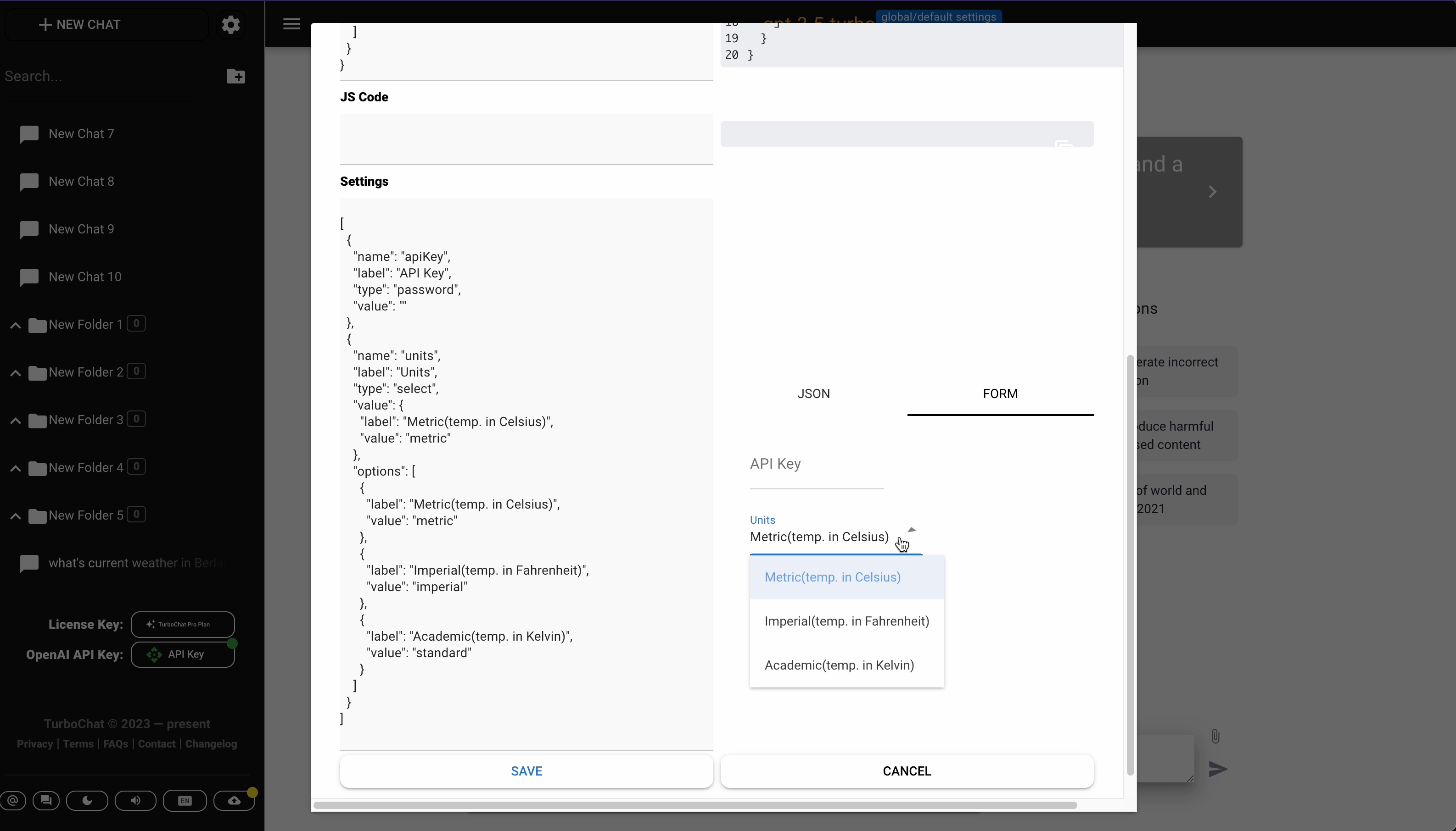 There is some number of predefined plugins(will be extended in the future, at least one New Chat Plugin is just for sample).